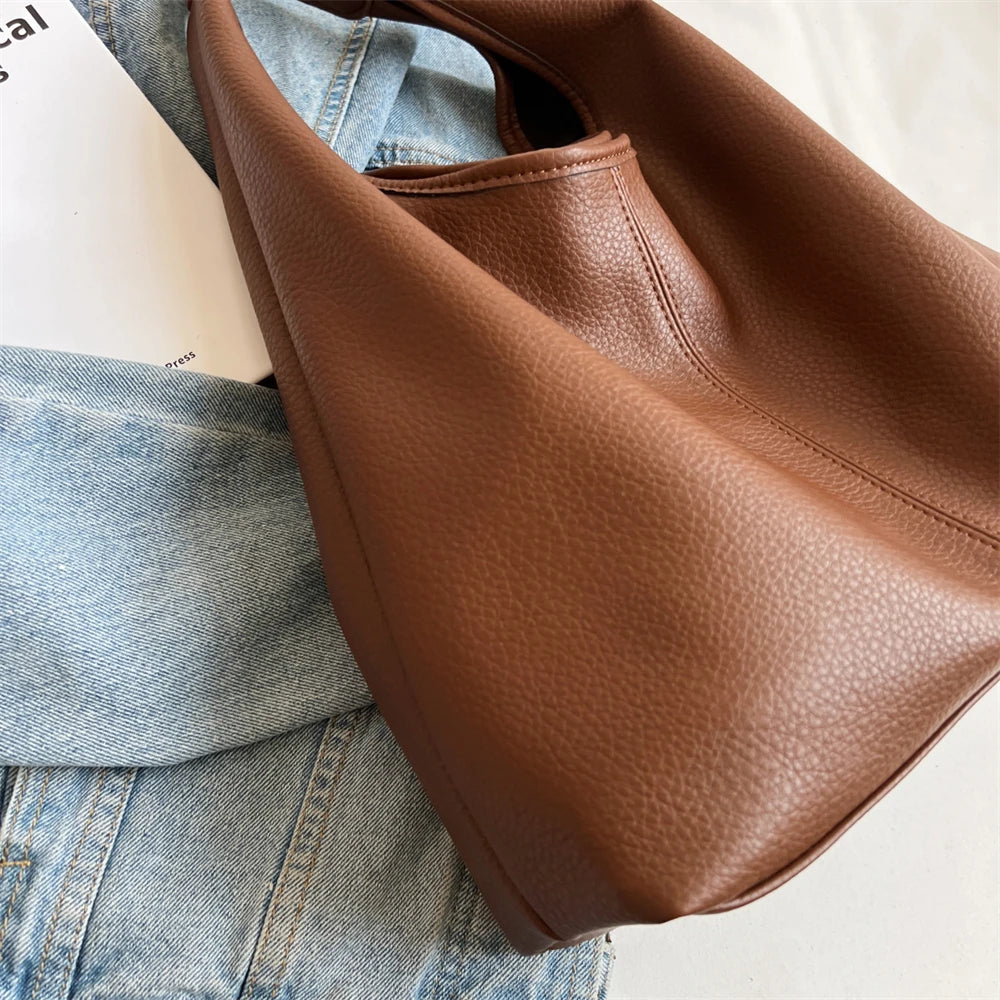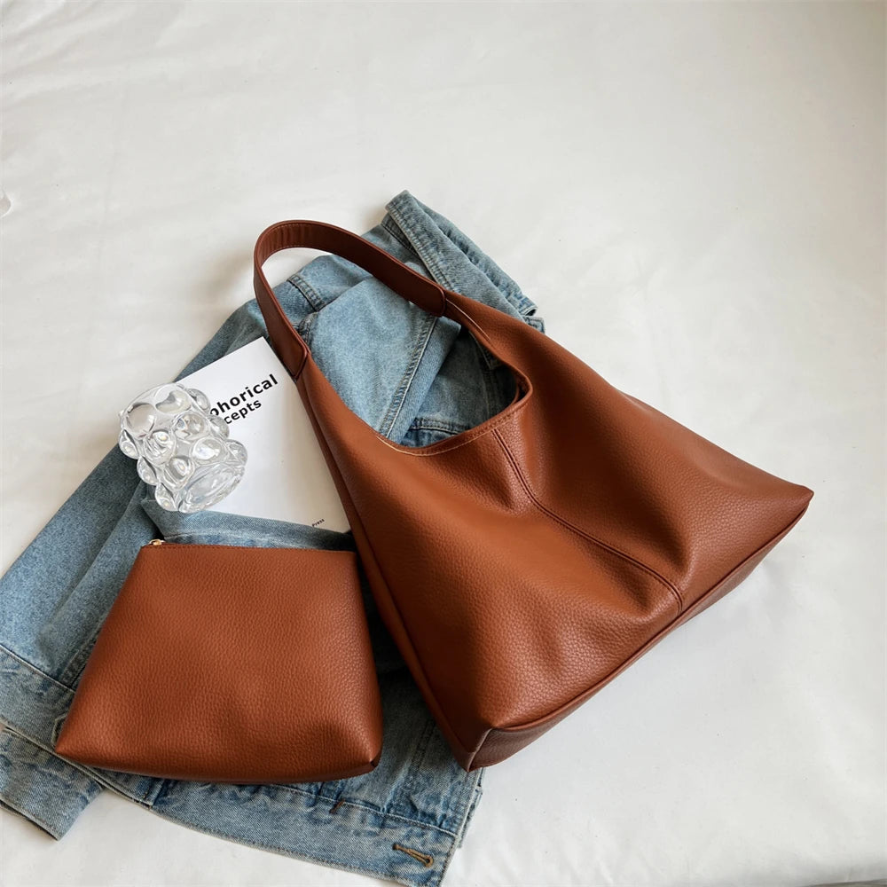 Simple Fashion Single Shoulder Tote Bag Set For Women Soft Leather
