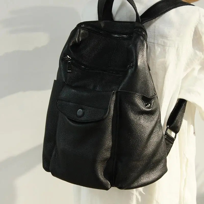 Women's Fashion Versatile Trend High Capacity Leather Travel Backpack