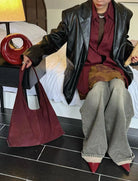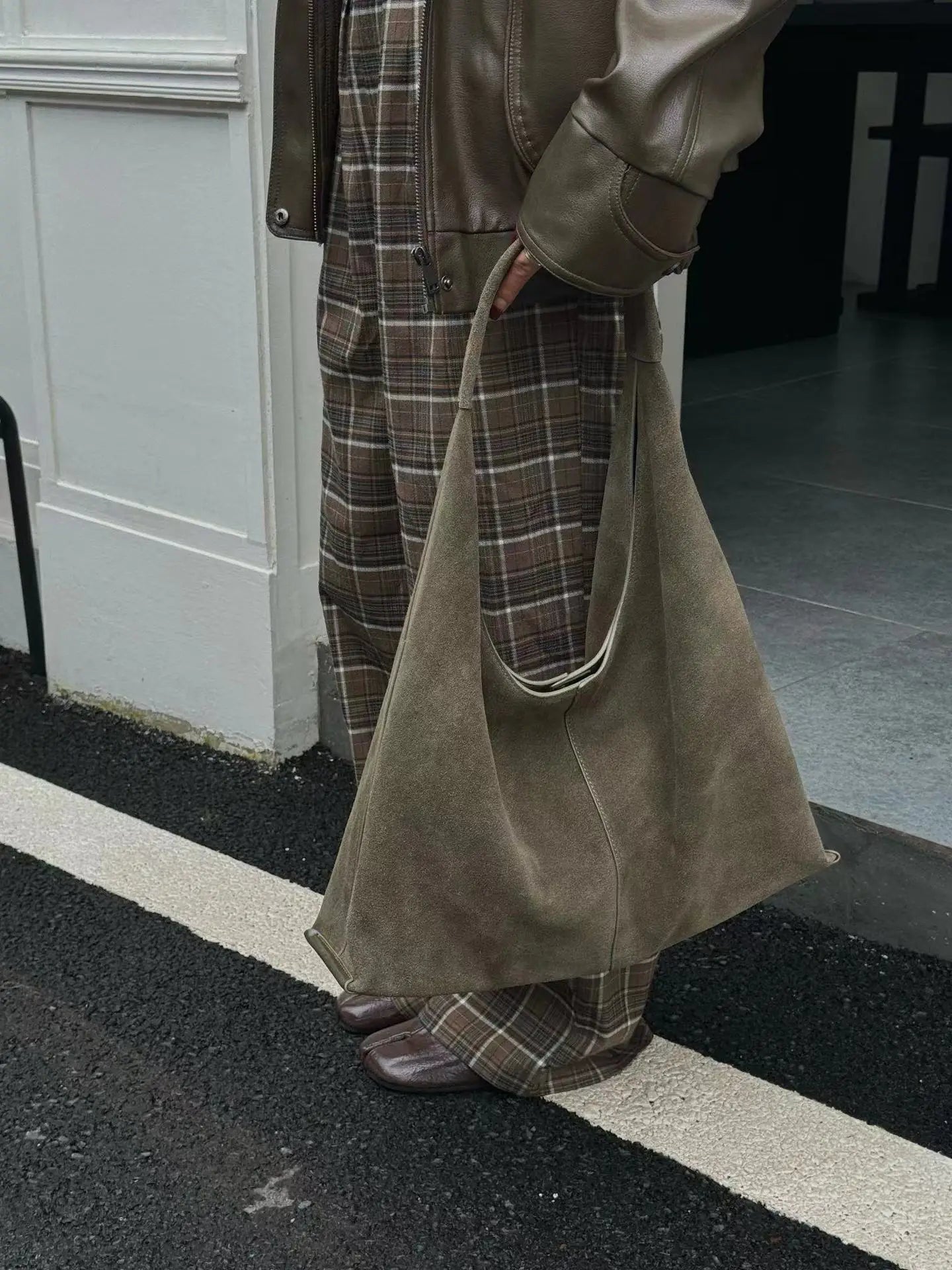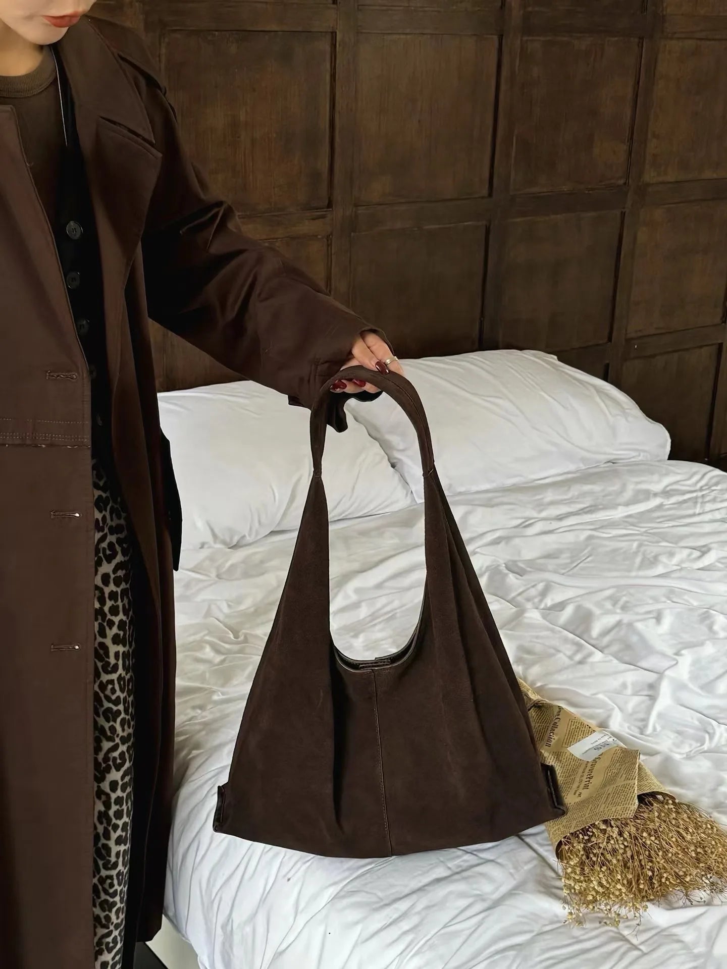 Frosted Cowhide Large Tote Underarm High Capacity Casual Crossbody Bag for Women