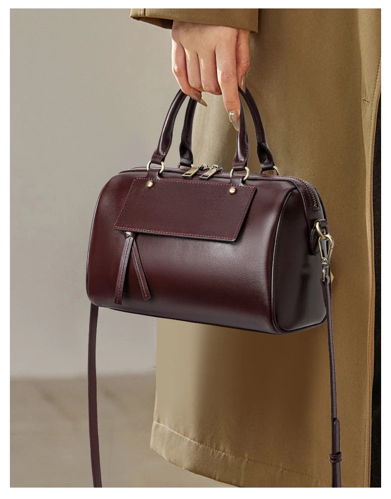 Leather atmospheric Boston pillow bag fashionable casual handbag for women
