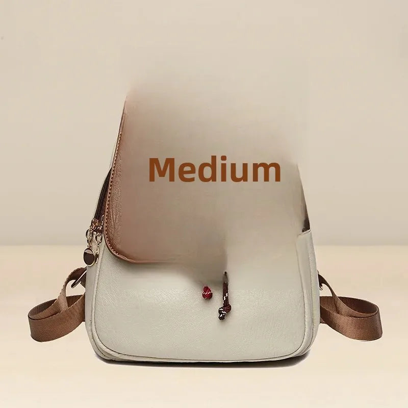 Spring Soft Leather Large Capacity Fashionable Student Backpack