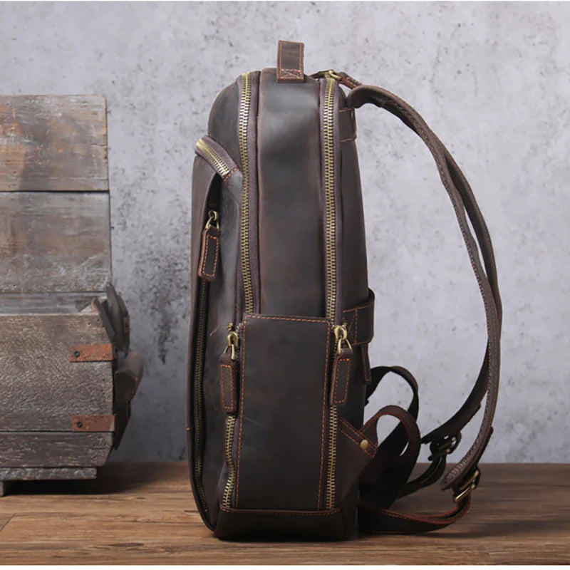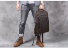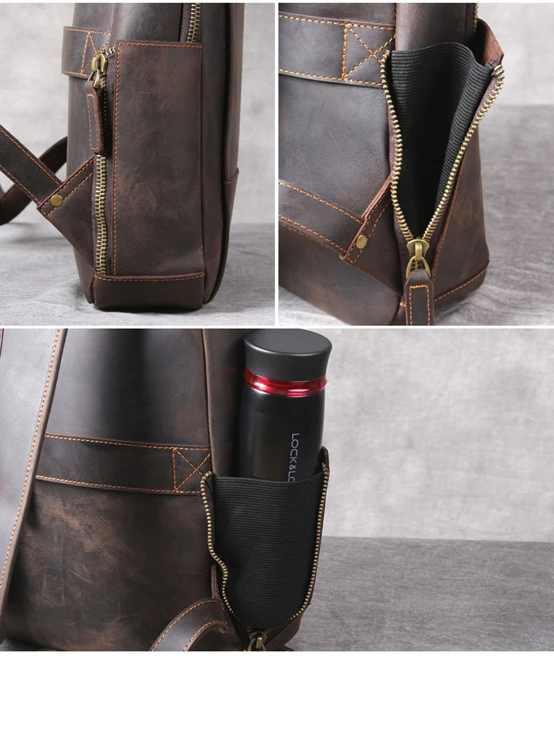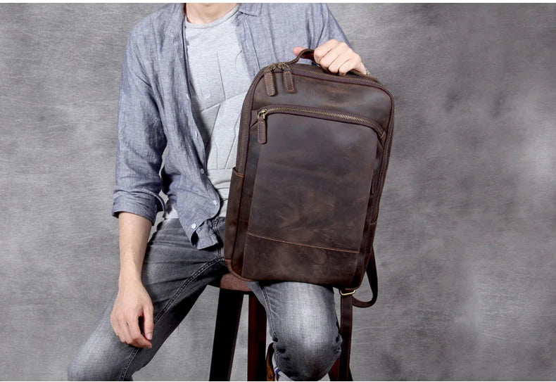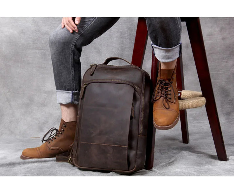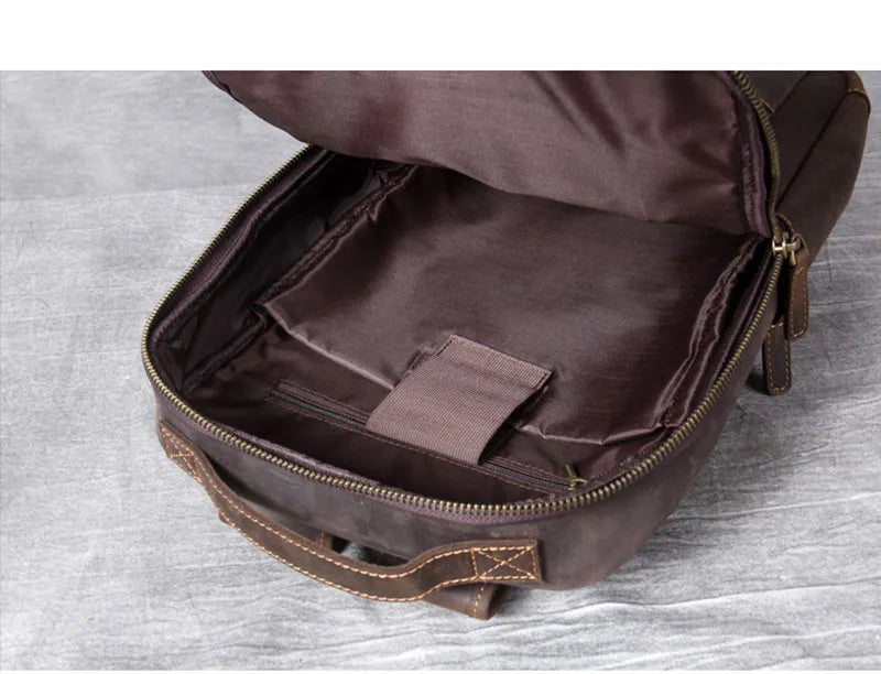 Vintage Crazy Horse Genuine Leather Backpack Men Backpack Laptop