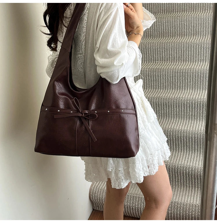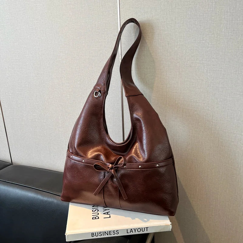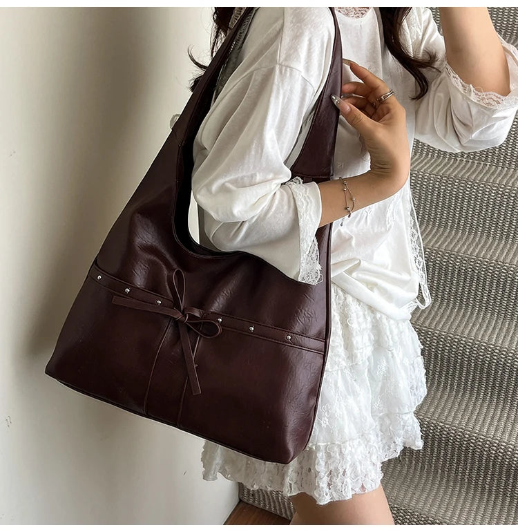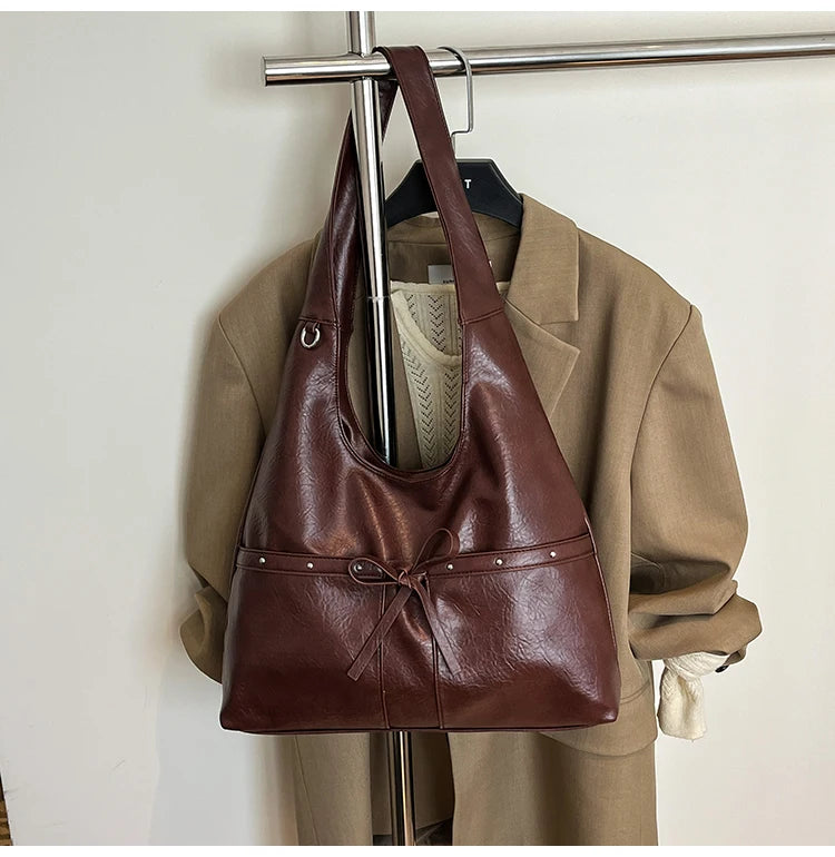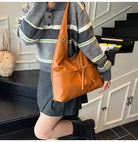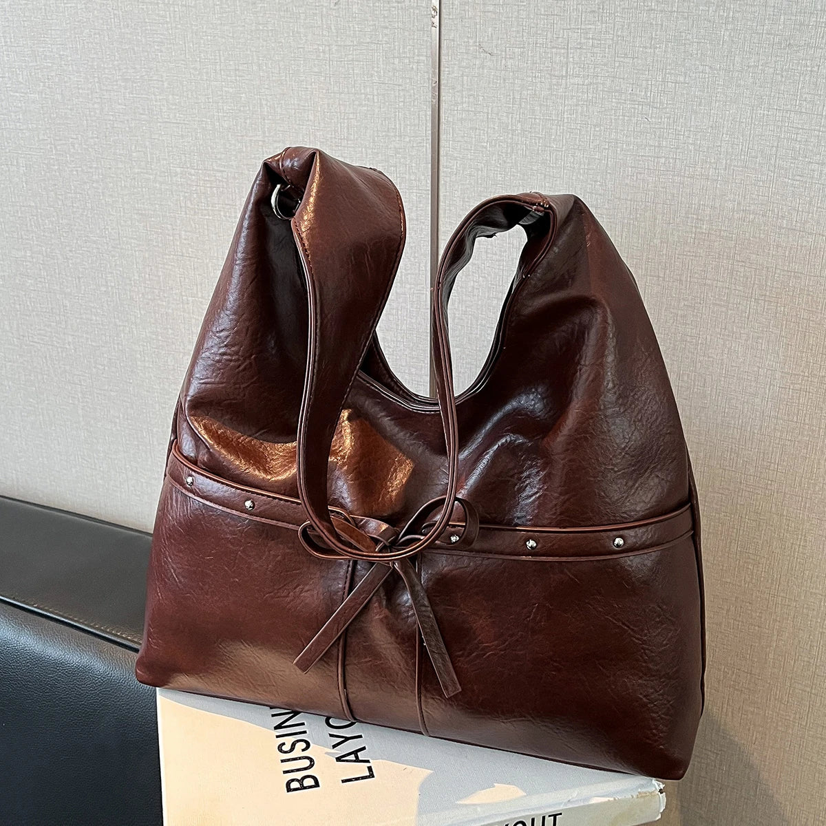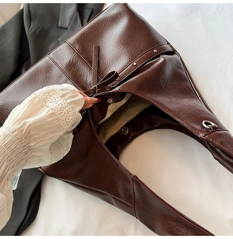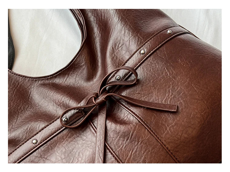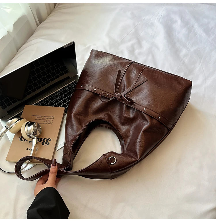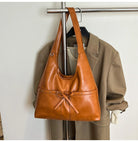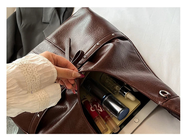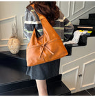 Women Brown Tote Bags Solid Pu Leather